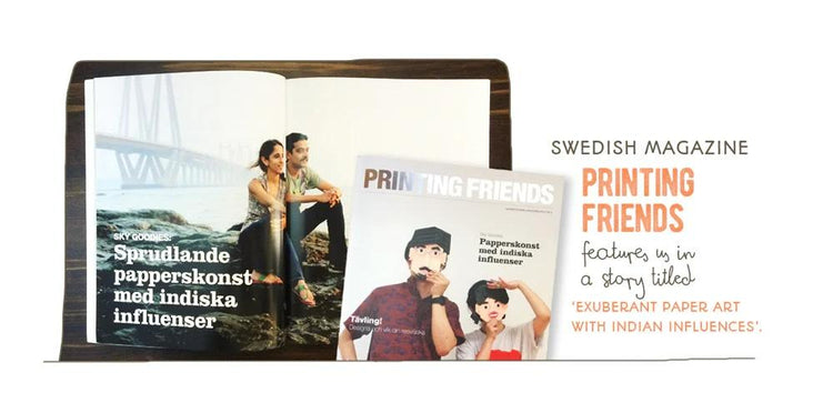 ____________________________09-Jul-2016, Swedish Magazine, 'Printing Friends' : 'Exuberant Paper Craft With Indian Influences', a full feature cover story on Sky Goodies, in the Swedish Magazine, 'Printing Friends'! Totally honoured and thrilled.