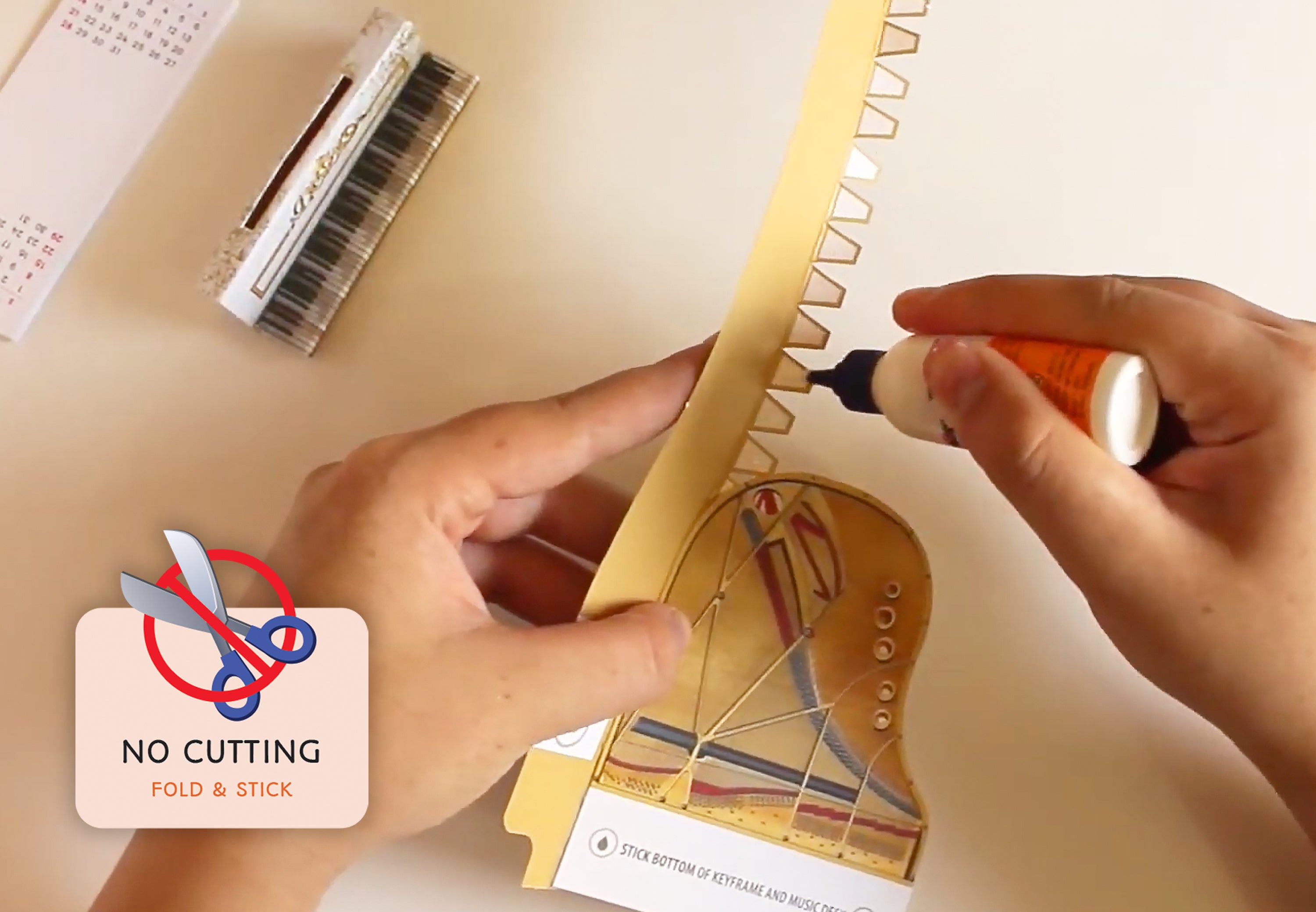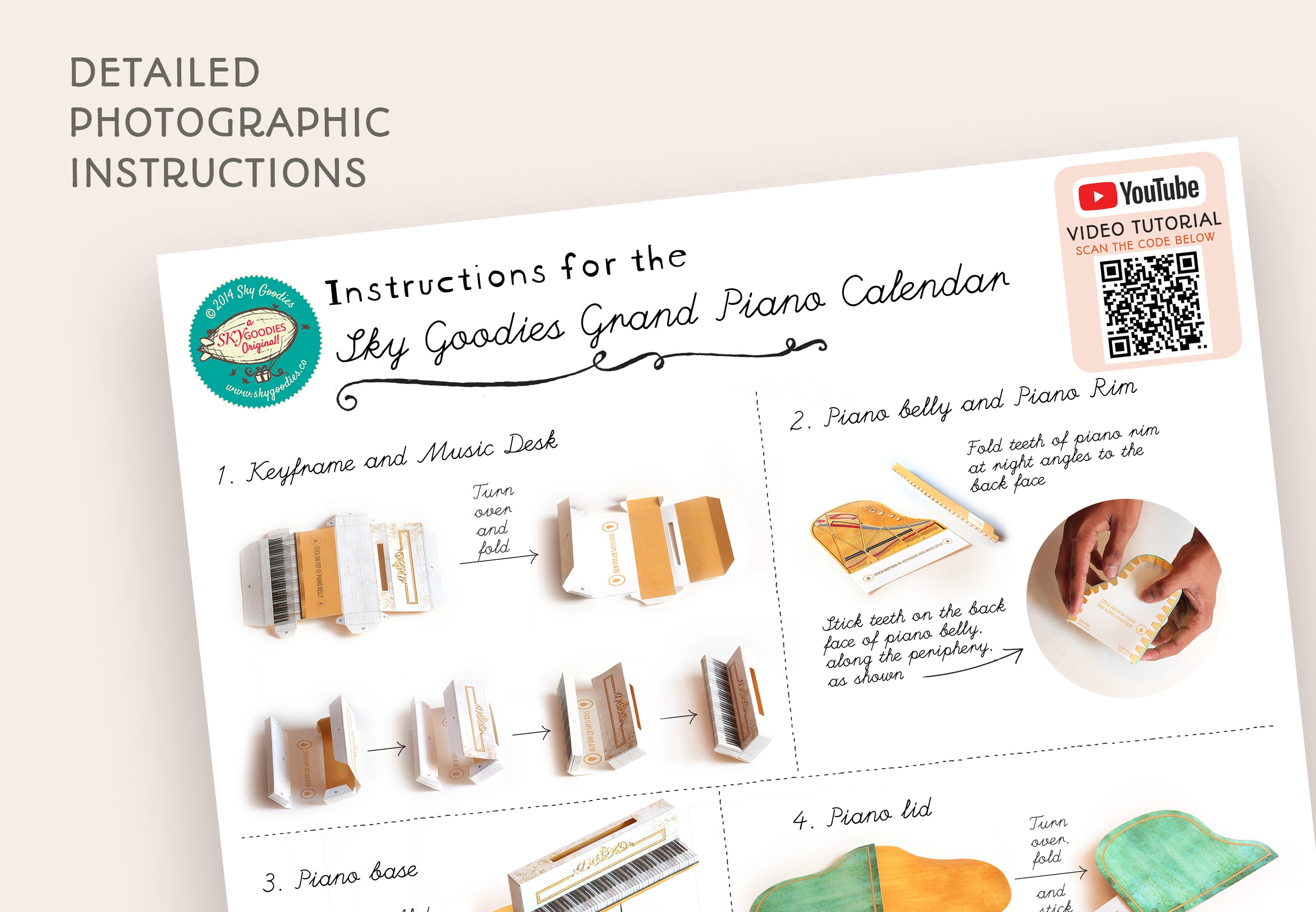 - 2 pre-printed, pre-cut, pre-creased A4 size sheets, with one piano calendar body.