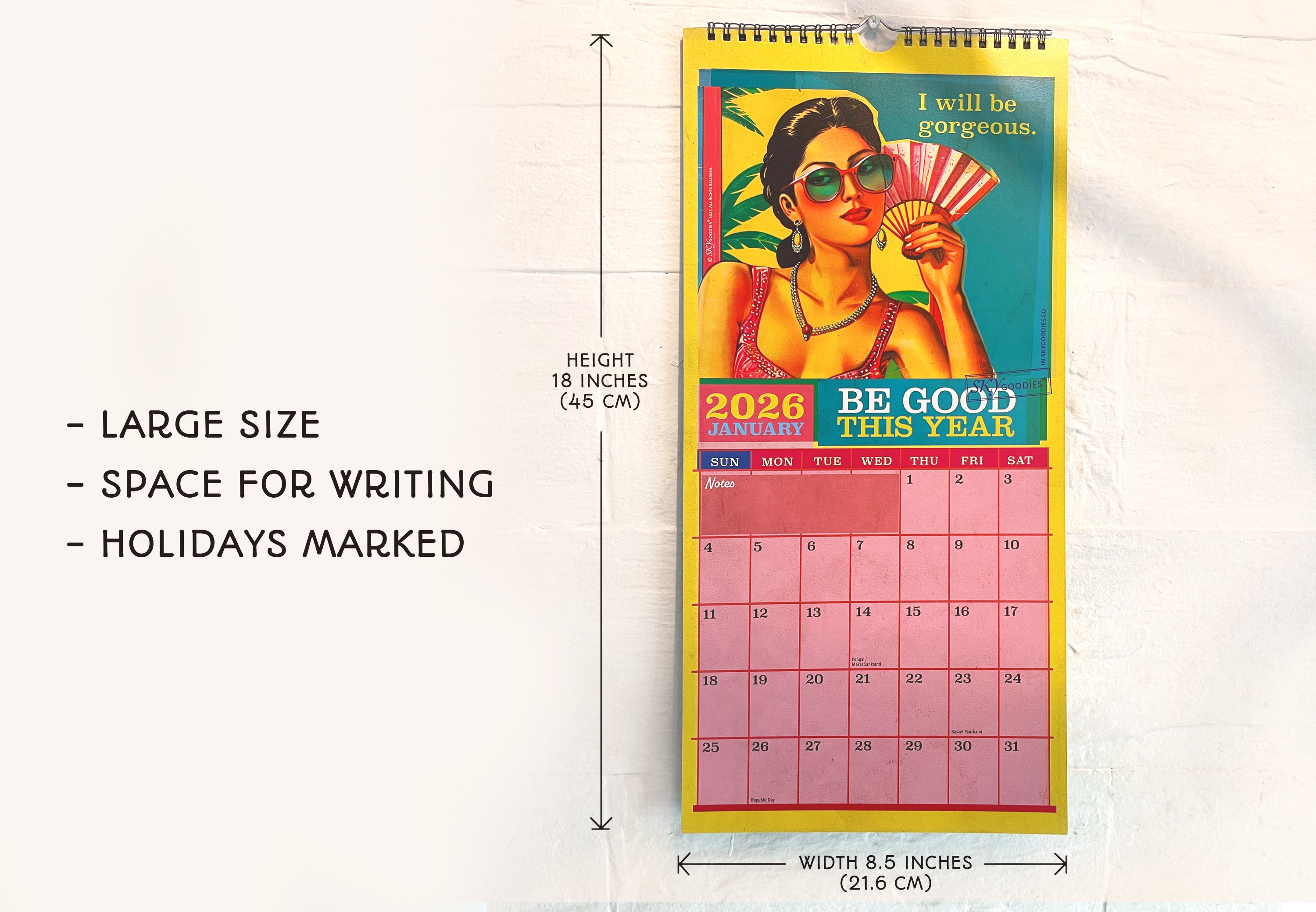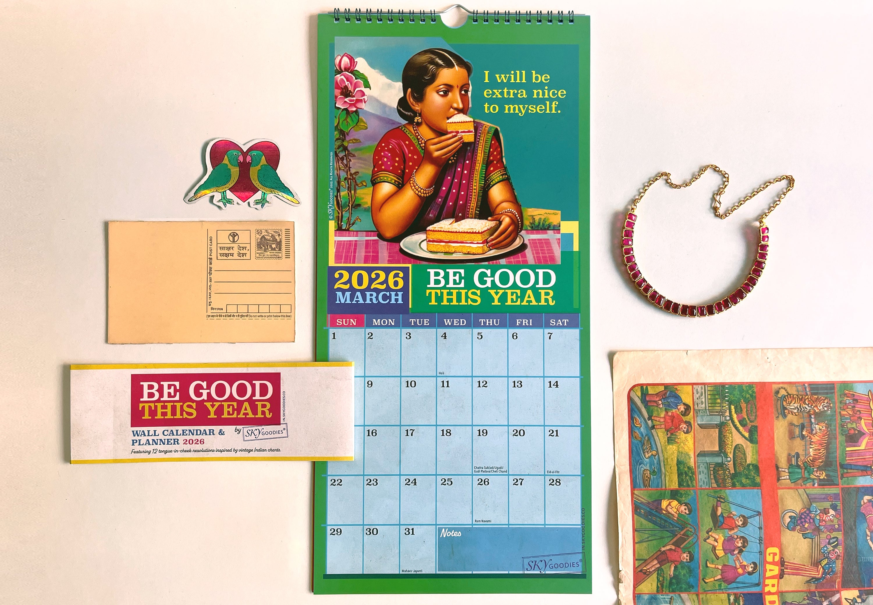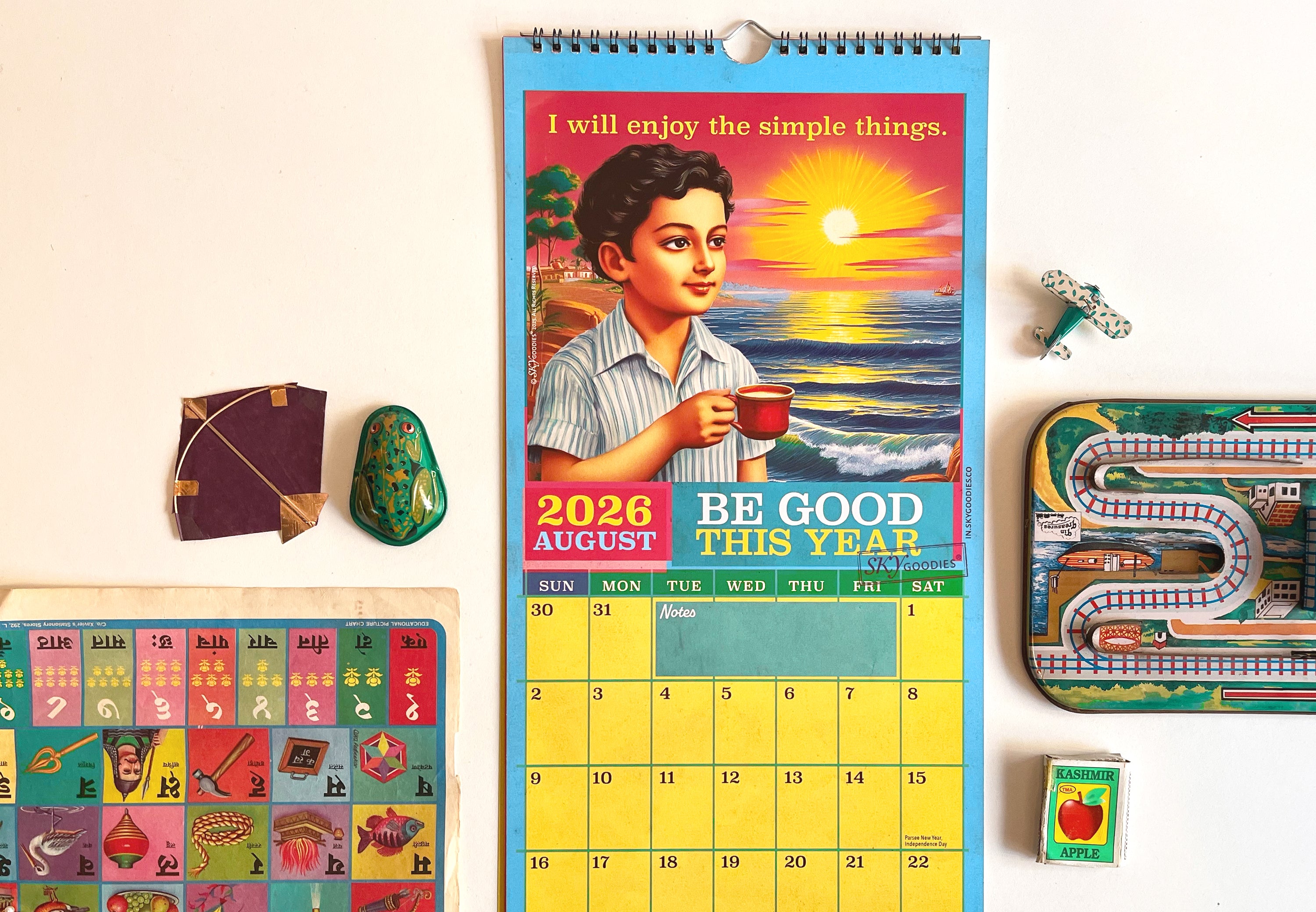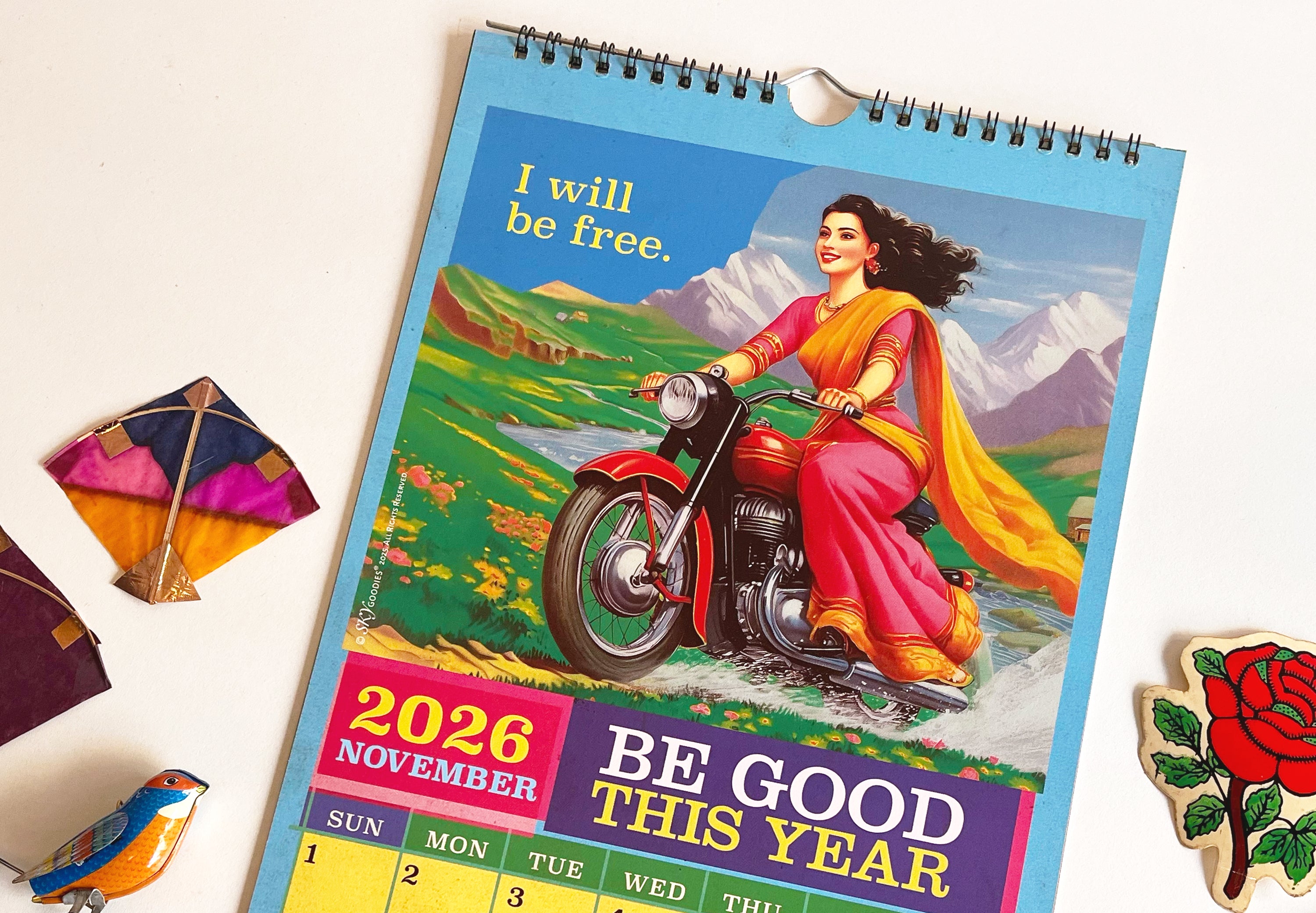 The tongue-in-cheek resolutions, combined with Indian street-art style illustrations capture the playful charm of a bygone era, making it fun to track dates while enjoying a daily dose of old-school cool. More than a time-keeper, this calendar is a conversation starter, and makes a great gift for anyone who loves retro Indian aesthetics and a good laugh. Designed to make you smile, every day of the year!