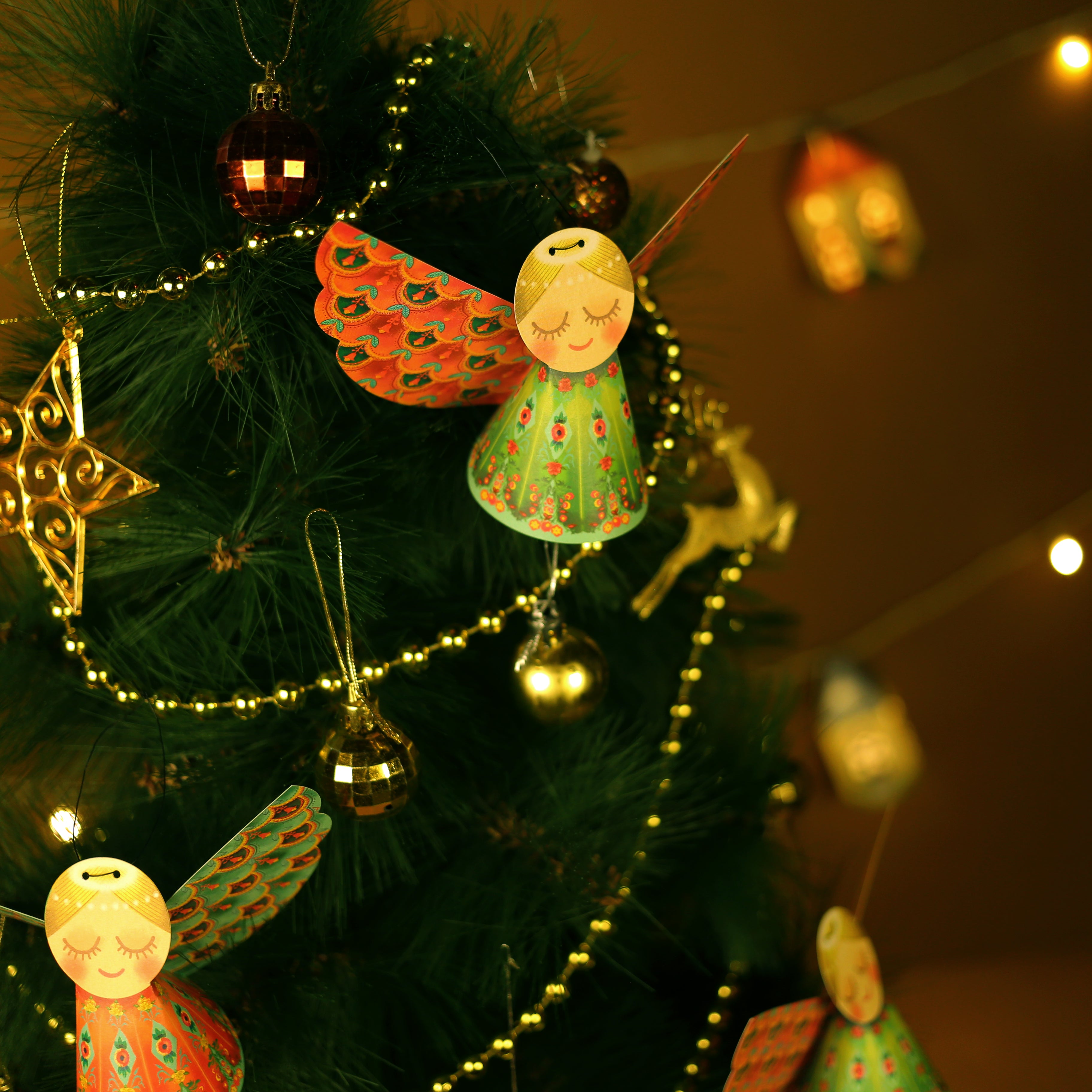 Colorful Christmas paper Angels for your home or tree... Perfect for holiday craft fun, or just pretty Christmas gifts! Each angel is lovingly illustrated with intricate hand drawn details. No sticking is needed; just a single slot to assemble them.