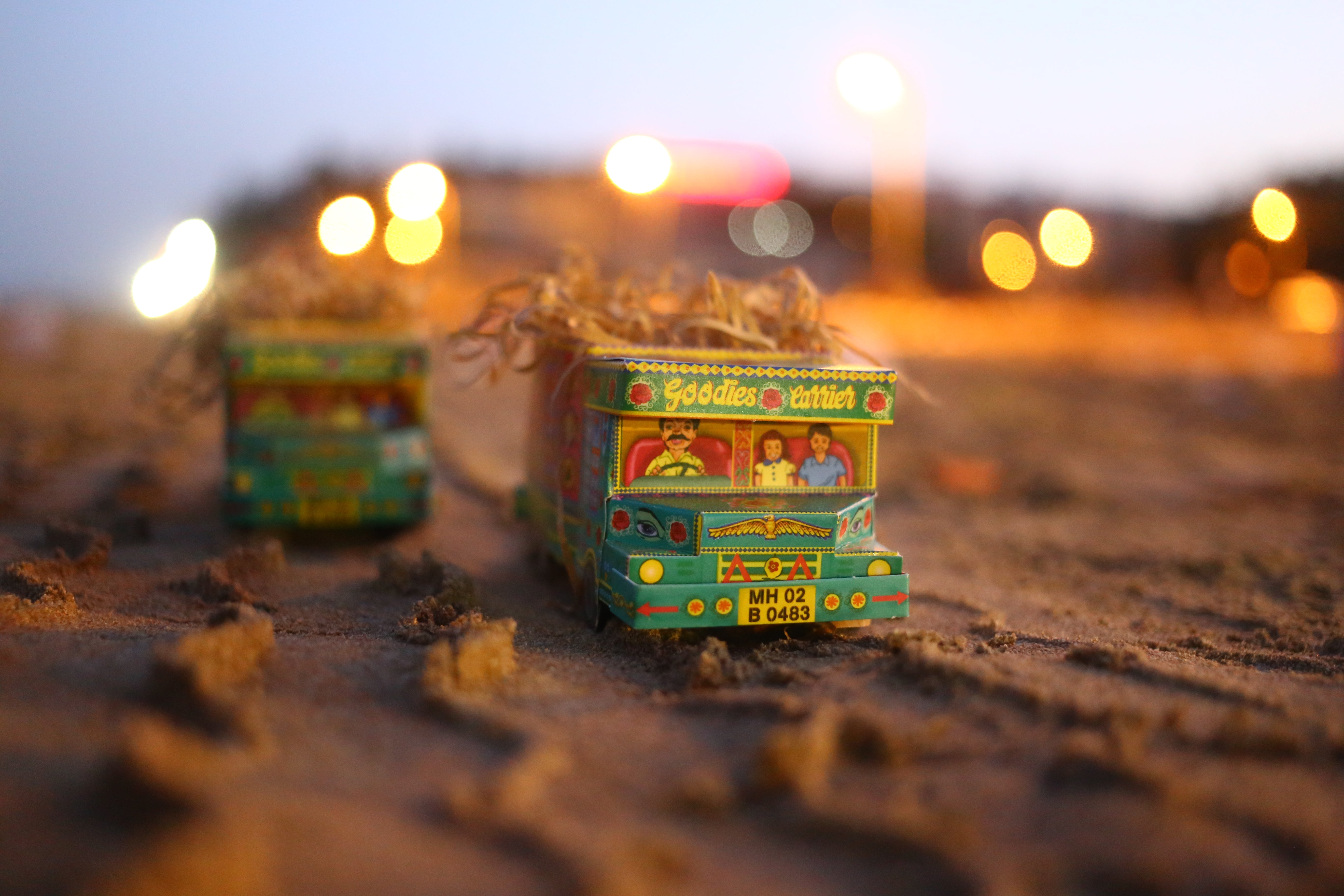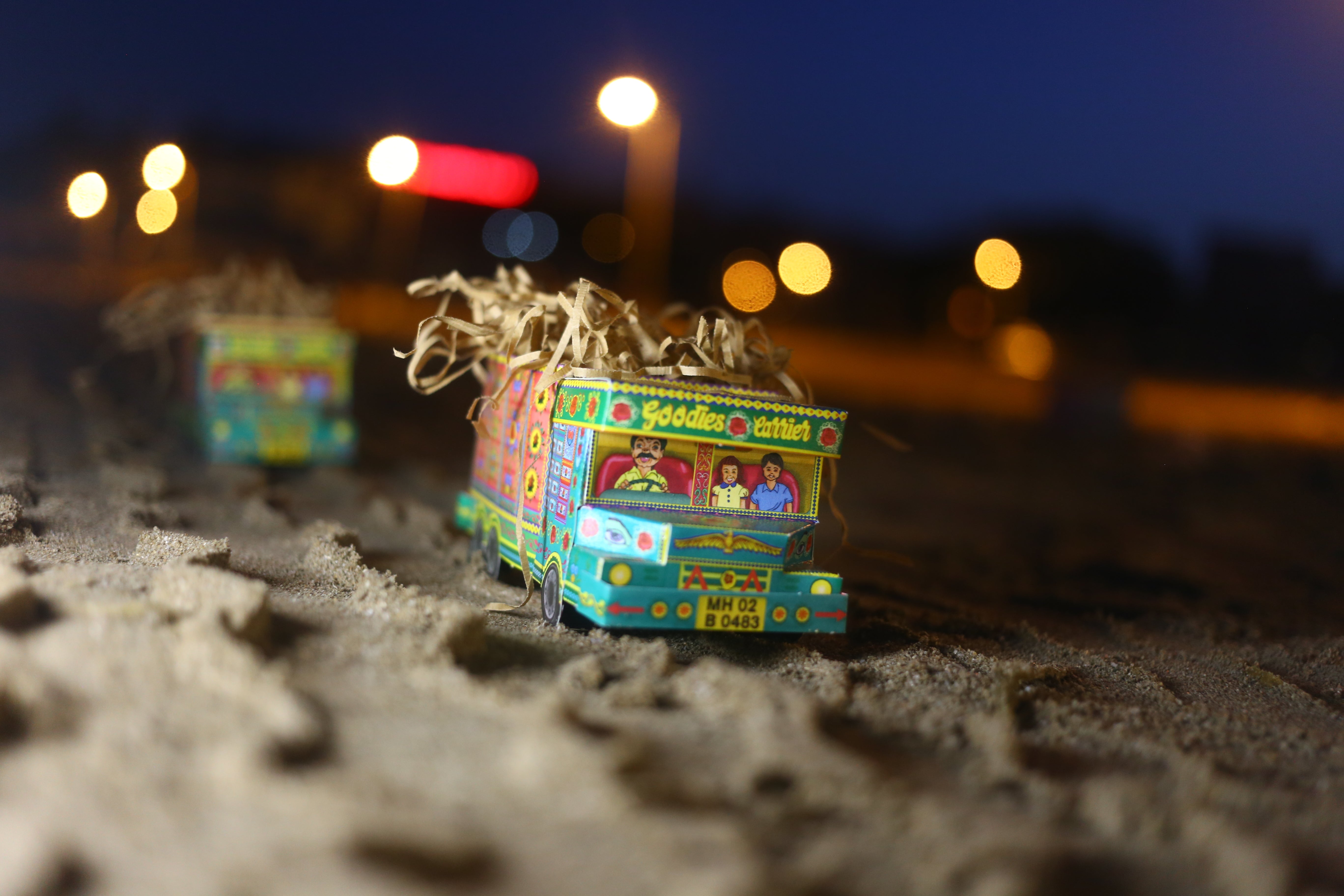THE STORY OF TRUCK ART: The roads and highways of India, are made more beautiful and colorful by the trucks that run on them. The name ‘GOODIES CARRIER’ is a pun on ‘GOODS CARRIER’, the title that every truck carries proudly. Every truck is bedecked with hand-painted art and symbols which are common across all trucks and yet each time they are painted, they have a unique character. The colors are bright and primary, making massive trucks seem like bright toys on dust-colored highways. The unique Truck Art style, a testament to the truck owners’ love for their brightly decorated homes, is threatened by the digital revolution, as hand-painting is fast being replaced by mass-produced stickers.