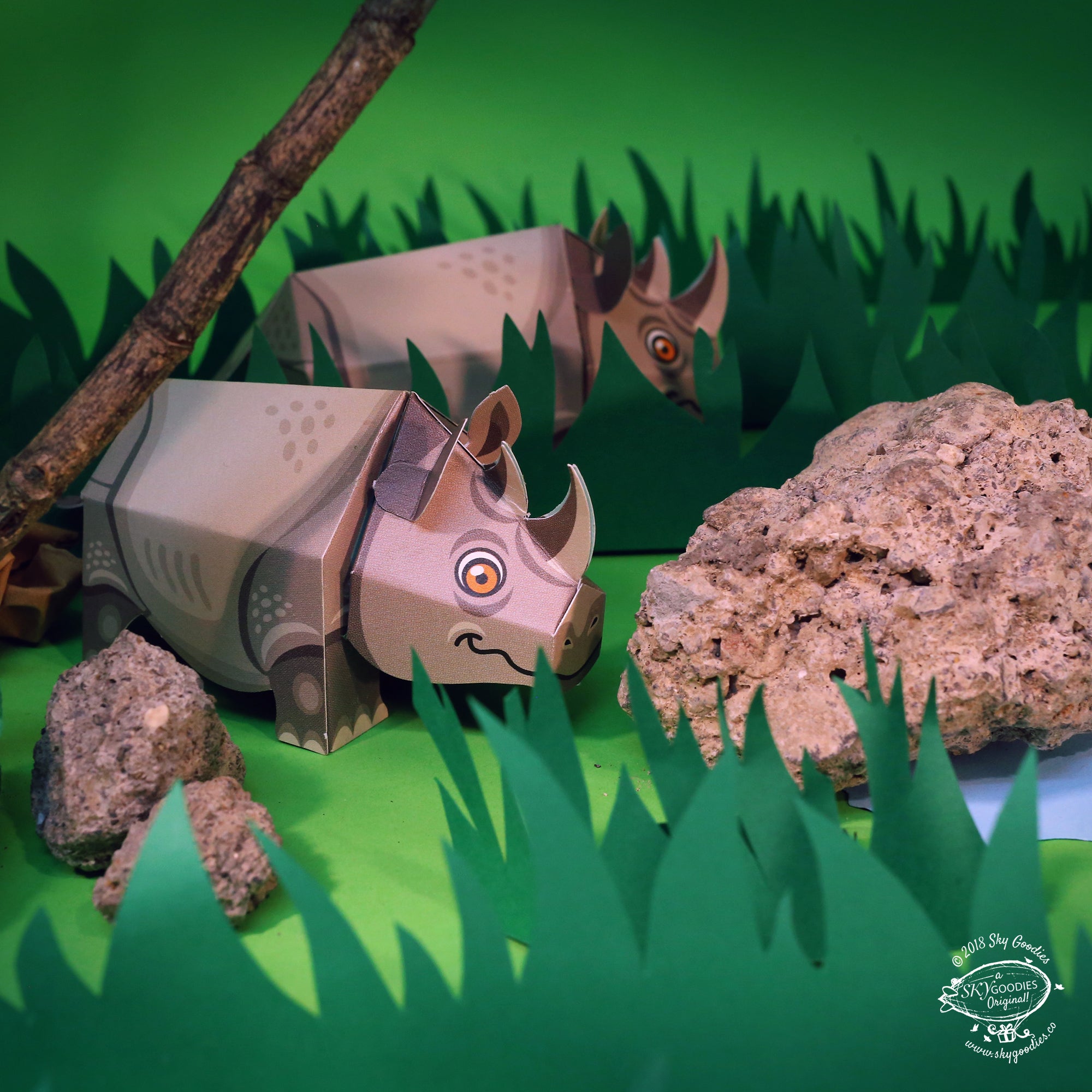 Did you know that rhinos are so nearsighted, that they sometimes mistake rocks and trees for live animals, and charge at them? Learn more about the rhino and have fun making a miniature paper animal of your own!