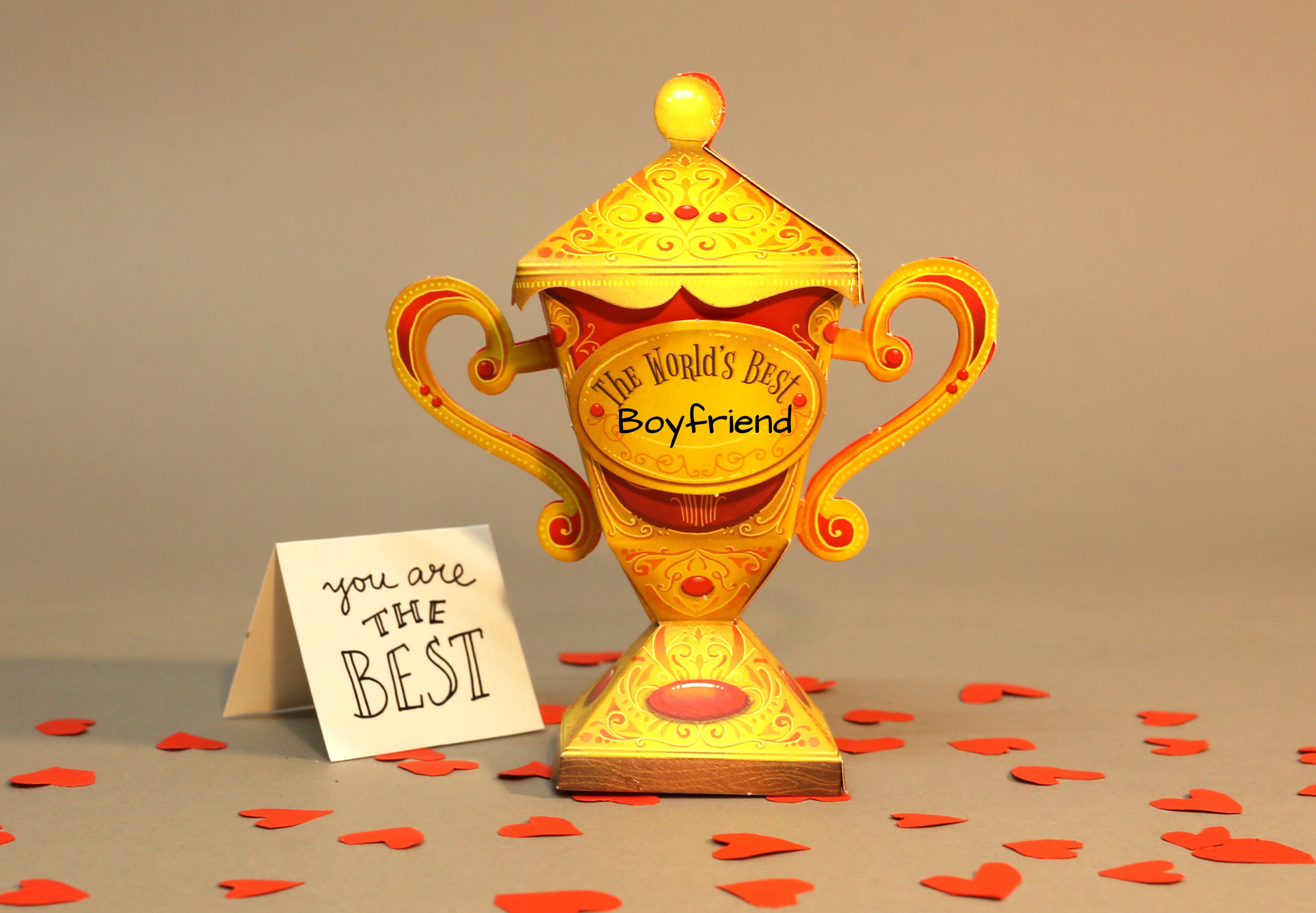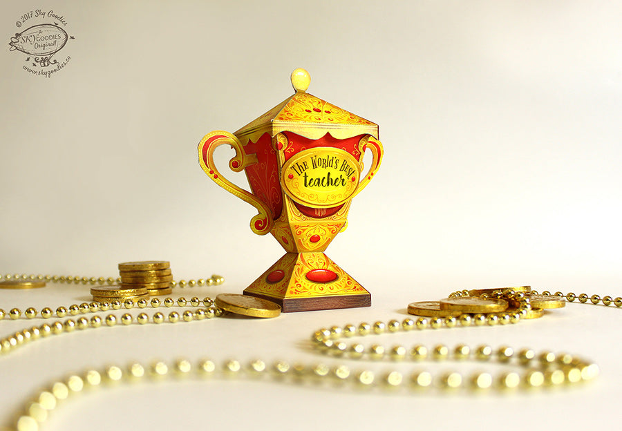 Make it for your Mom on Mother's Day, Dad on Father's Day or for your teacher on Teacher's Day, or simply celebrate any big or small achievement by gifting this trophy. Pop a small gift into the cup if you like. It comes with 4 plaques that you can customize by writing your own message one them.