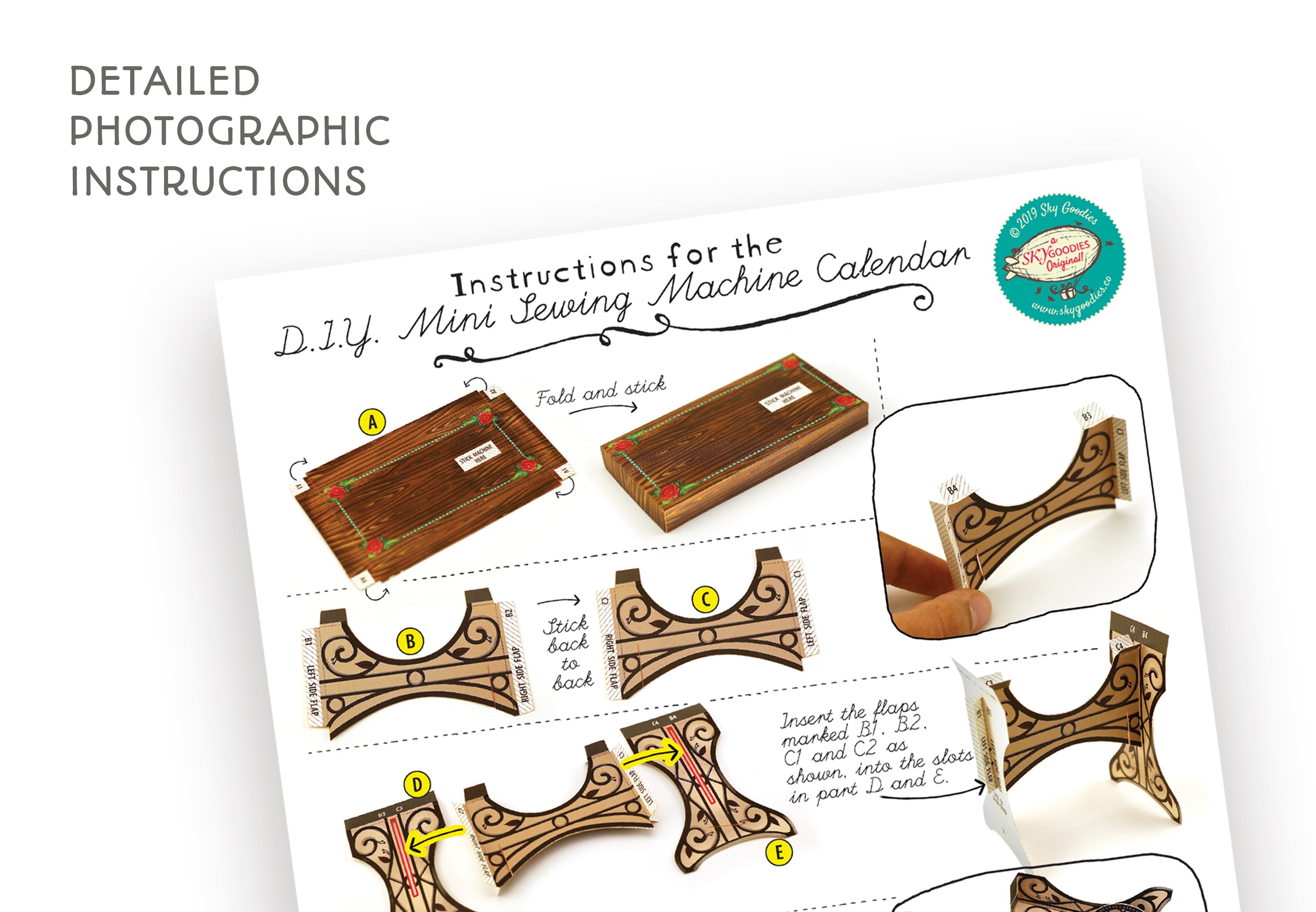Finished size of the sewing machine calendar: about 11.5 cm length, 4.5 cm width and 12.5 cm height.