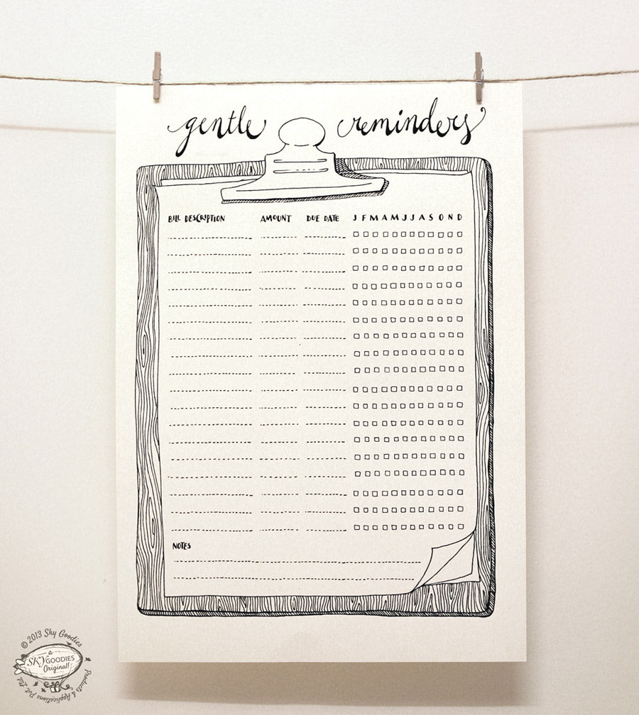 Get those tasks done! Here’s a set of to-do lists and bill reminder sheets to help you plan your tasks.