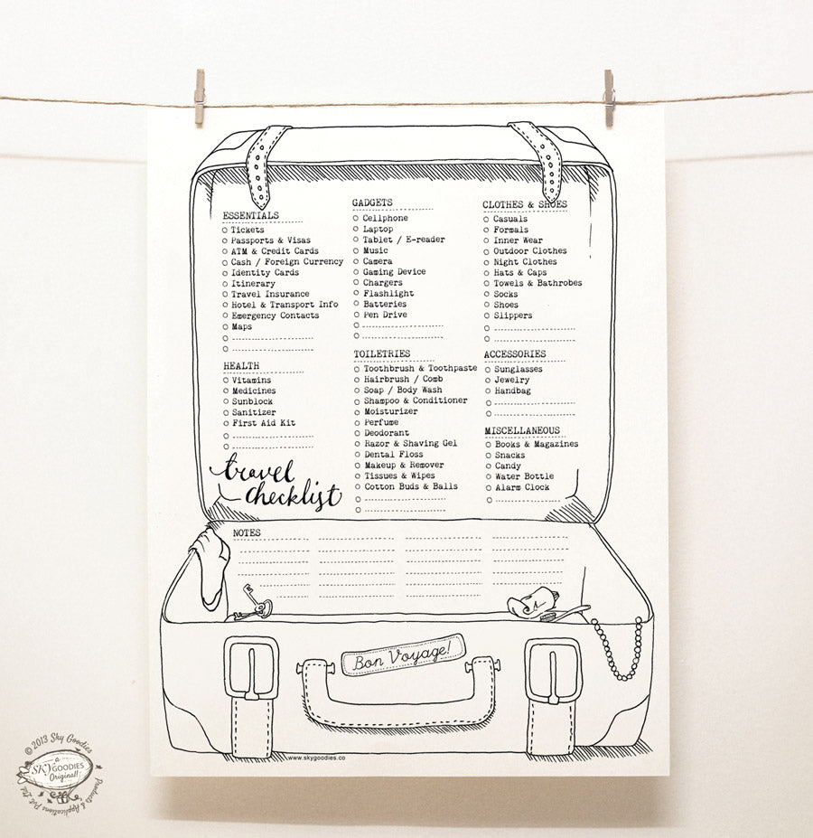 TRAVEL / PACKING CHECKLIST - 5 sheets
