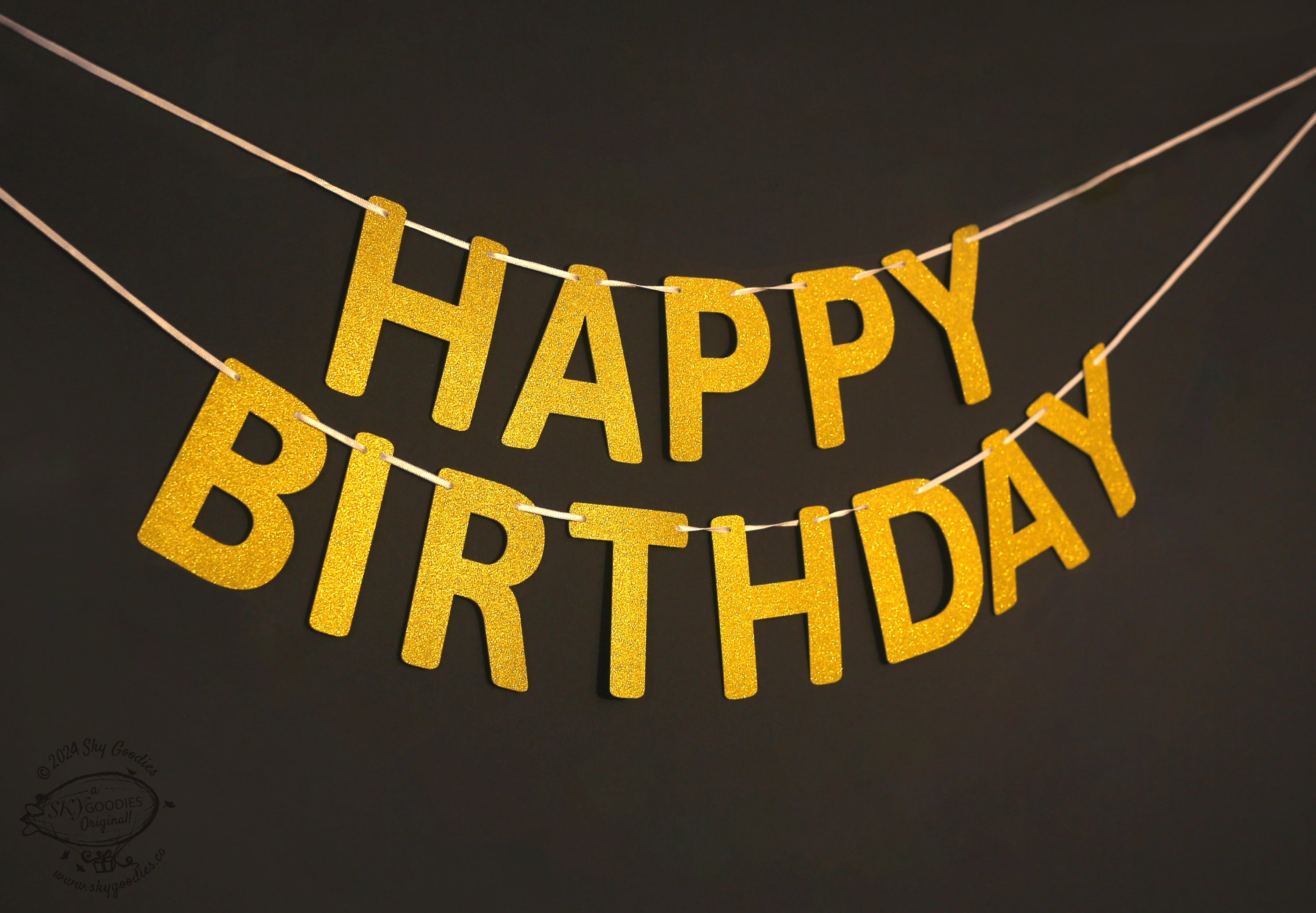 Crafted from high-quality thick card paper paper, our glitter-gold 'Happy Birthday' is durable and simple, and easy to string up with the satin ribbon and needle that are part of the pack.