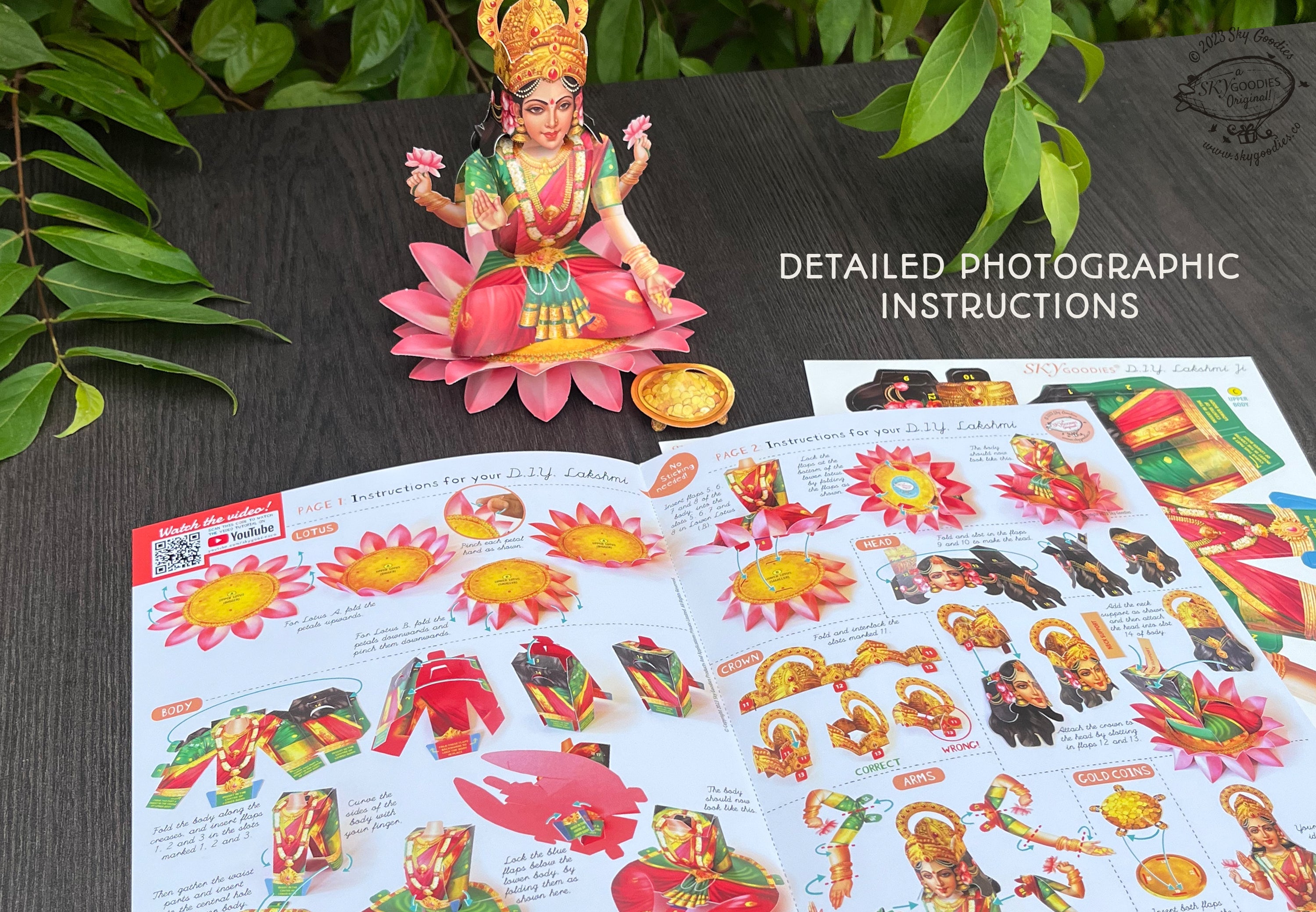 Bring home the Goddess of Wealth and Prosperity, Lakshmi Ji. It's a beautiful, positive and relaxing activity for adults and kids to assemble this this eco-friendly idol of Lakshmi Ji, together.