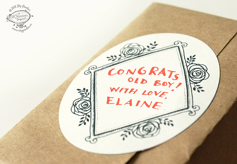 Dress up your jars, gifts, books or anything else, with these vintage inspired hand-drawn label stickers! Full of old-world charm, they are perfect to write a message or description. They come in 12 different quaint hand-drawn designs, with 24 stickers in each set. Each label is an oval shape of dimensions 2.7 inches by 3.35 inches (6.8 cm by 8.5 cm).