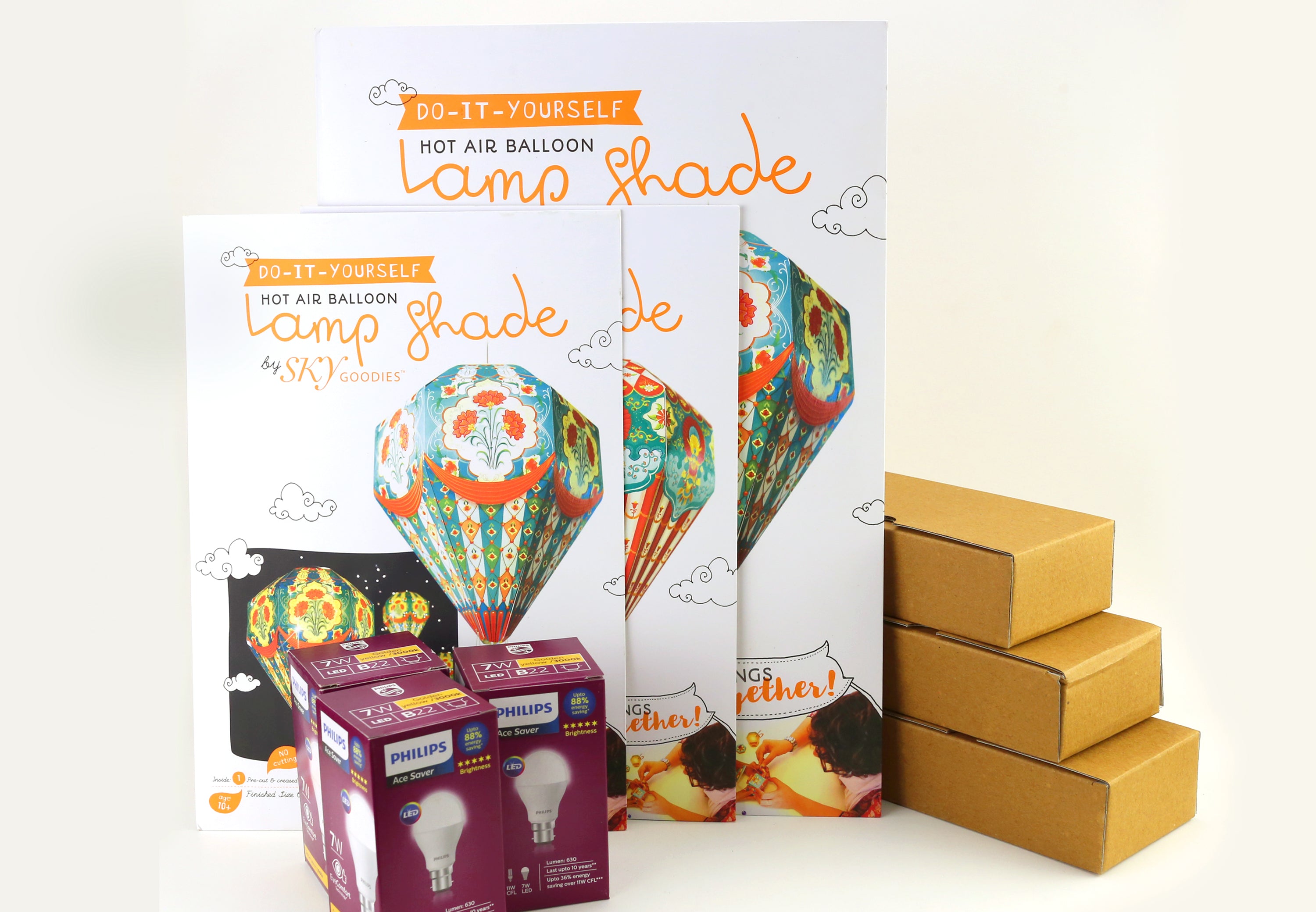 - 3 pre-cut, pre-creased balloon sheets (1 Big Blue, 1 Small Red and 1 Small Blue hot air balloon lamp shades)