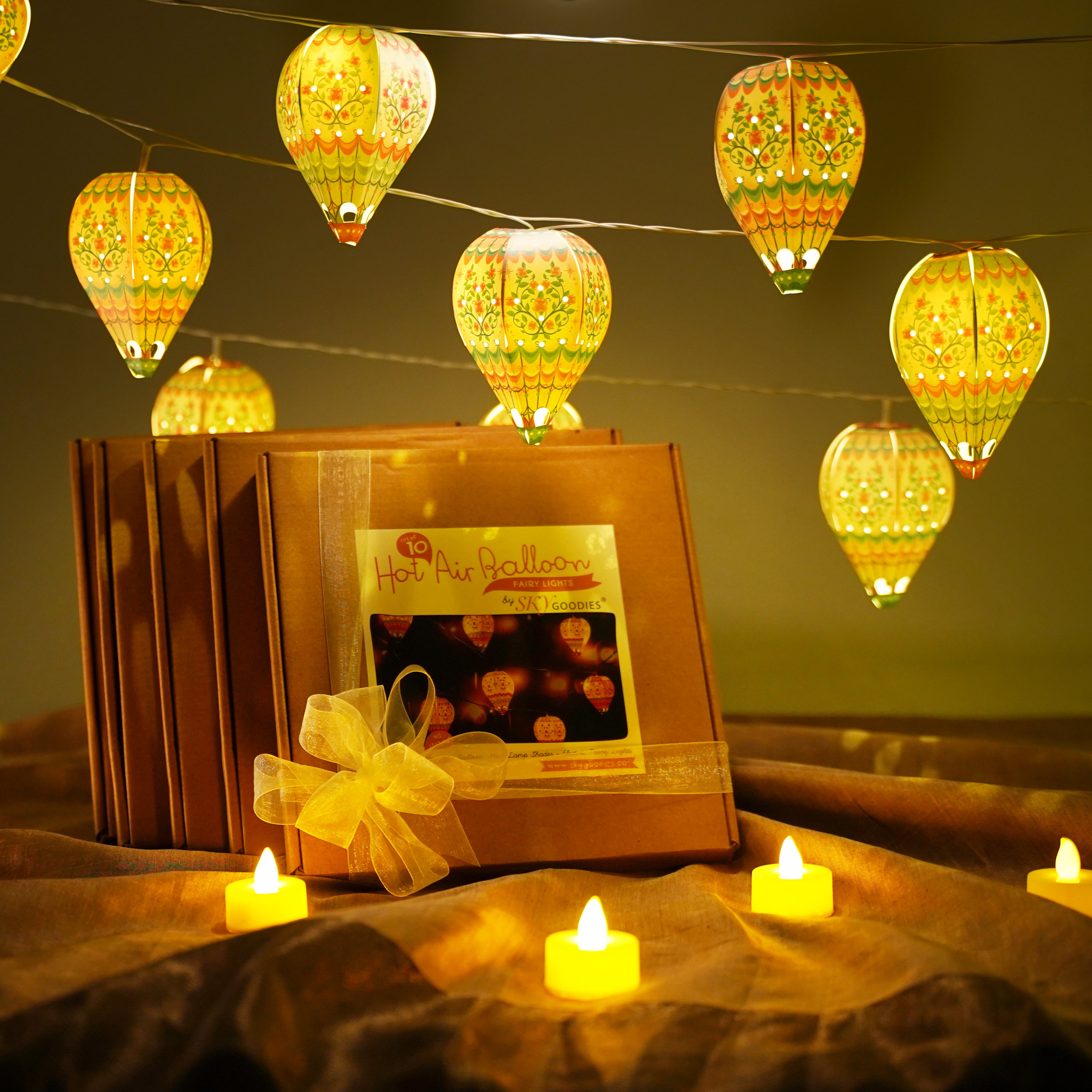 This set includes 60 dreamy mini hot air balloon lamp shades along with 5 strings of electric fairy lights, to transform your space. Spend a lovely evening with loved ones putting this together... its a simple craft activity. This is a must-have paper craft for home decoration during festivals, parties and celebrations.