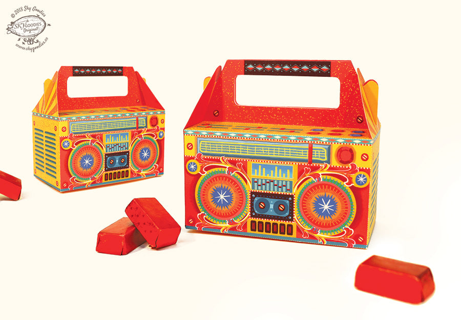 Say goodbye to boring gift boxes! Meet the Boom Box Radio-shaped gift box, exuding a retro colourful vintage vibe. Perfect for weddings, parties and festive gifting, order these beautiful gift boxes in bulk at a great discounted price. A set of 10 pieces will include the gift box, ready to assemble in seconds, without glue. Each Box can hold 200-250 gms of sweets