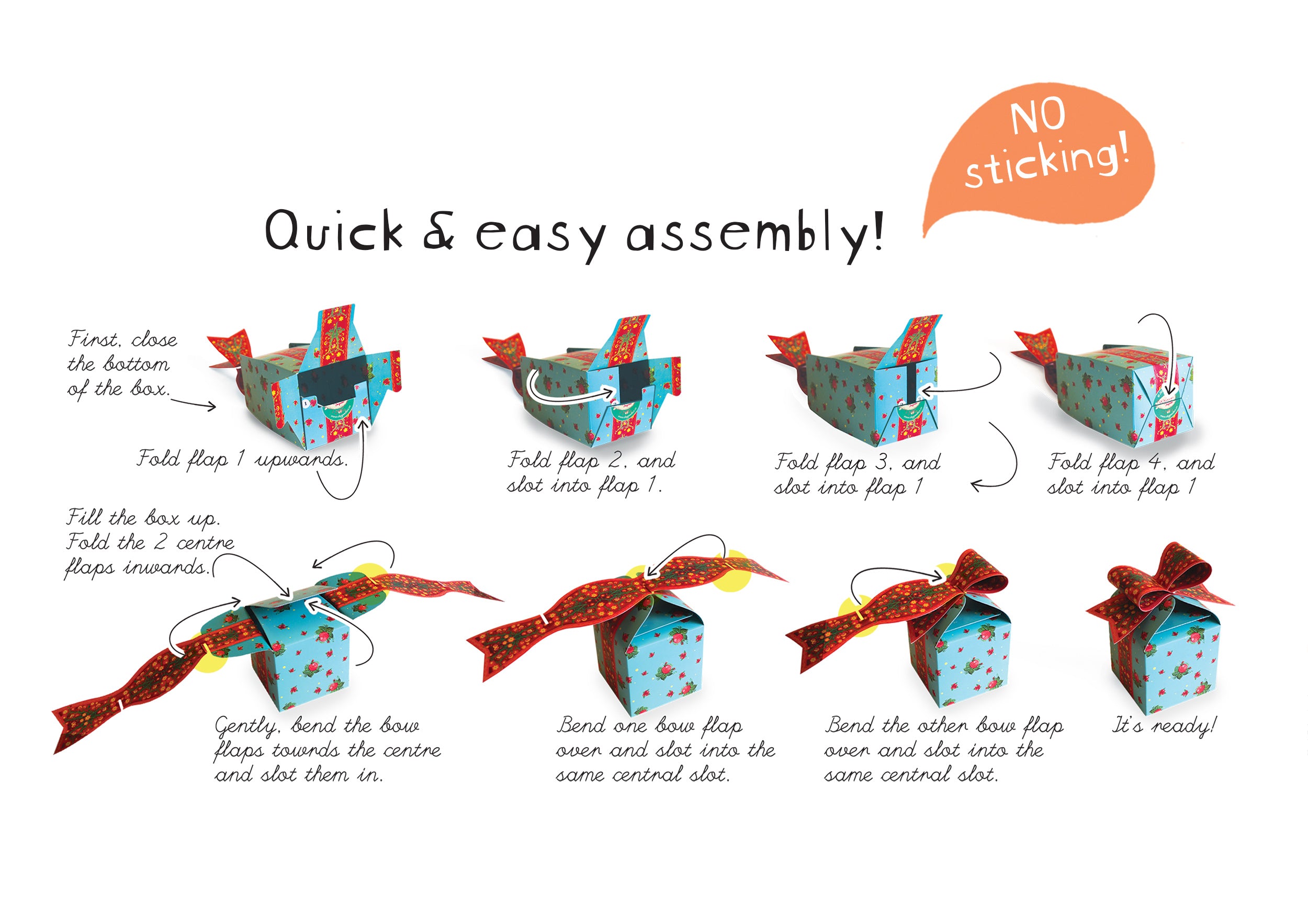 -10 pieces of flat pre-cut gift boxes, ready to assemble with slots. No sticking.
