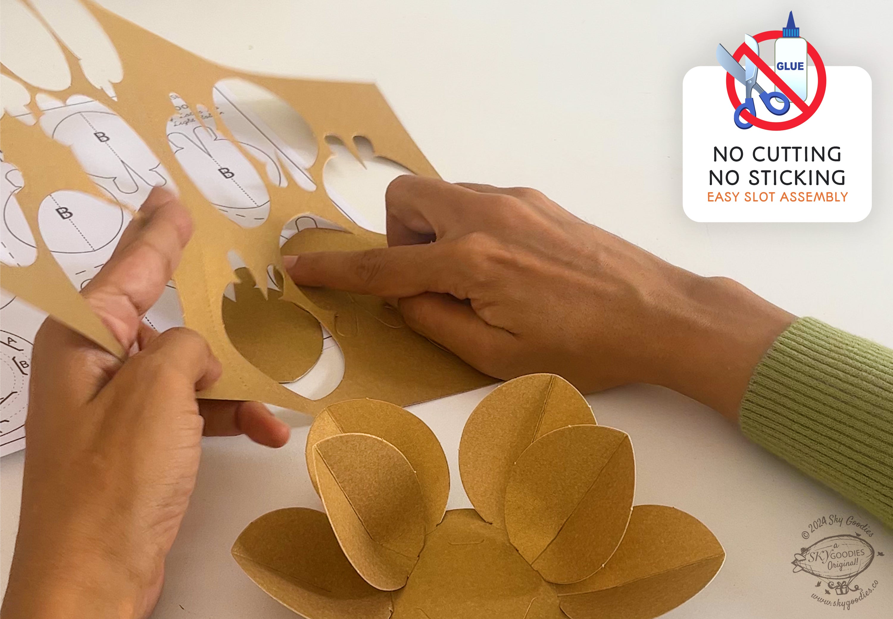 To make the assembly process easy and enjoyable, we’ve created a video tutorial on YouTube, guiding you through each step. This calming activity is perfect for enjoying solo or with loved ones, fostering creativity and connection. Plus, when the celebrations are over, you can easily detach the petals, flatten them, and store them for your next occasion. Embrace the joy of crafting with our delightful Papercraft Kit!
